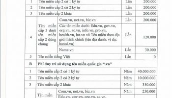 Thông báo điều chỉnh bảng giá tên miền Việt Nam Ngày 10/11/2016, Bộ Tài chính ban hành Thông tư số 208/2016/TT-BTC quy định mức thu, chế độ thu, nộp, quản lý...